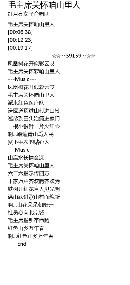 | [00:03.27] | 毛主席关怀咱山里人 |
