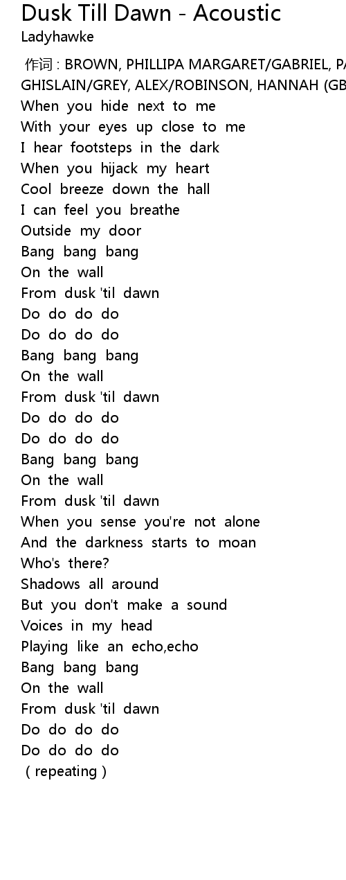 | [00:00.00] | zuo ci : BROWN, PHILLIPA MARGARET GABRIEL, PASCAL RICHARD MARCEL GHISLAIN GREY, ALEX ROBINSON, HANNAH GB |