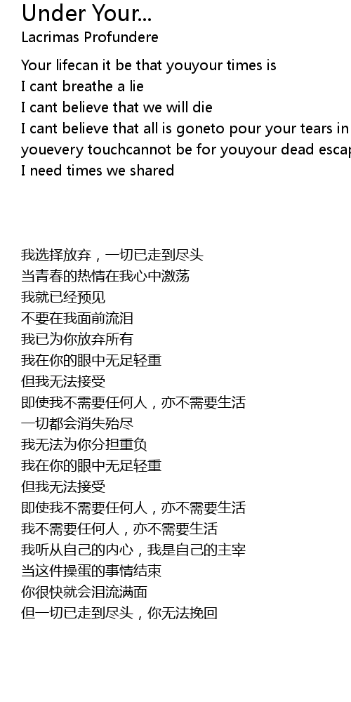 | I cant believe that all is goneto pour your tears in our evesit means nothing to youevery touchcannot be for youyour dead escape is all | |