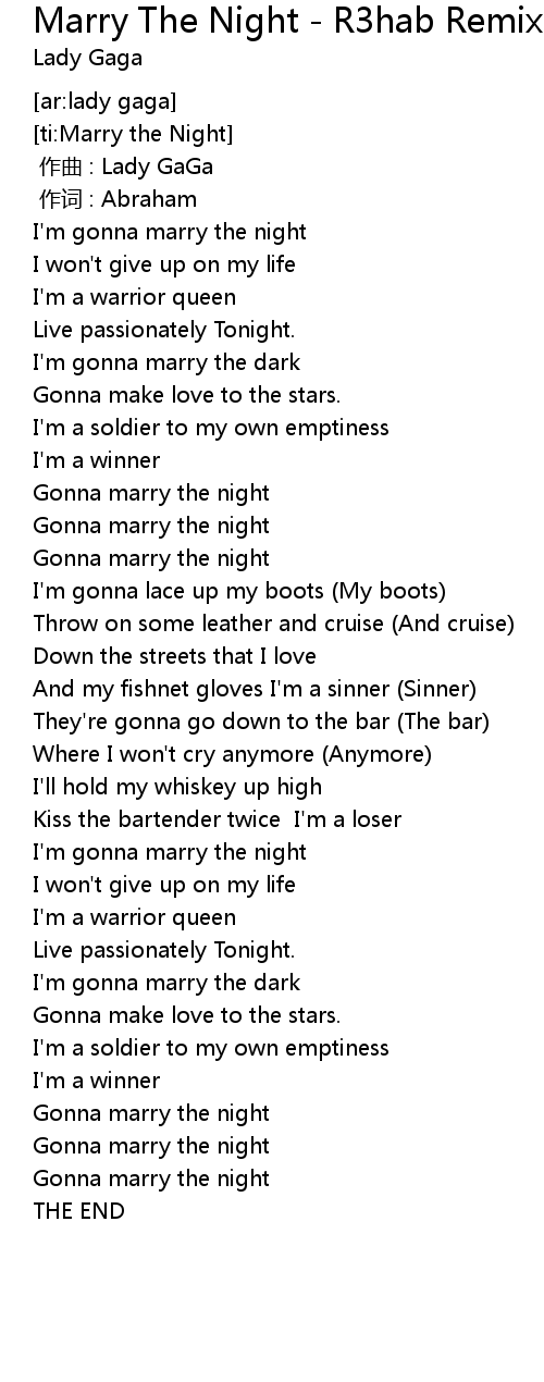 | [00:44.91] | I' m gonna marry the night |