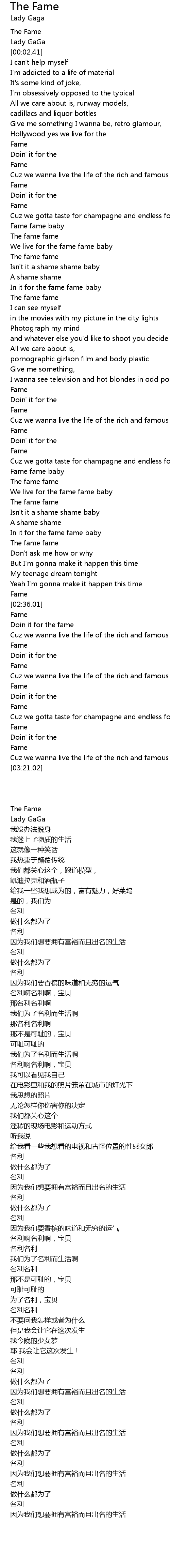 [00:01.10] The Fame