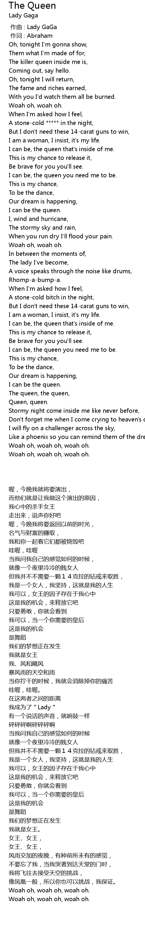 | [00:00.00] | 作曲 : Lady GaGa |