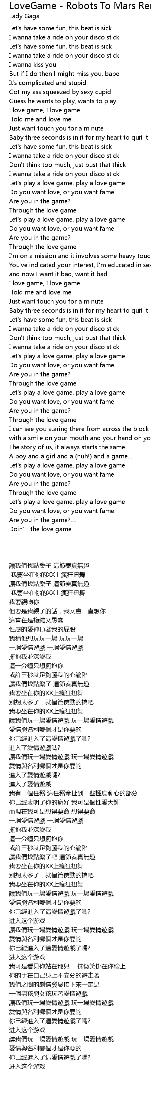 | [01:51.820] | Let's play a love game, play a love game |