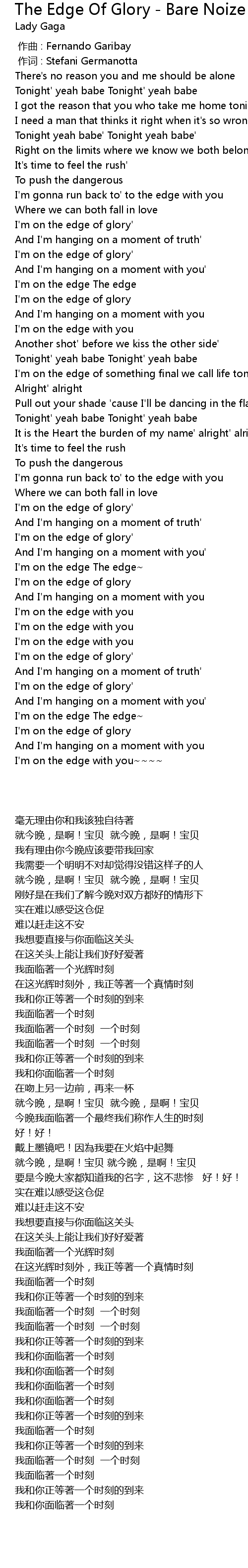 | [00:01.00] | 作词 : Stefani Germanotta |