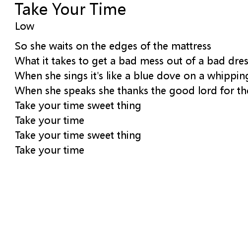 | Take your time sweet thing | |