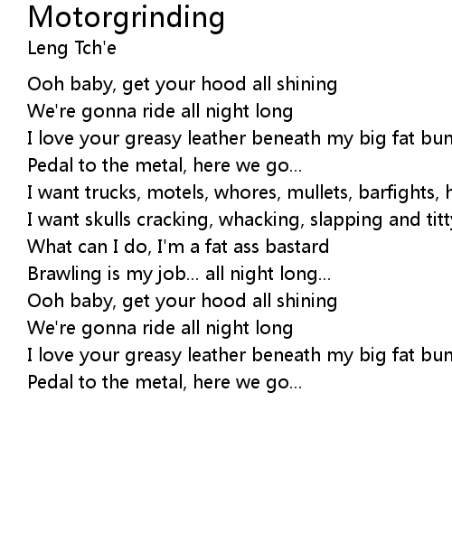 I love your greasy leather beneath my big fat bung |