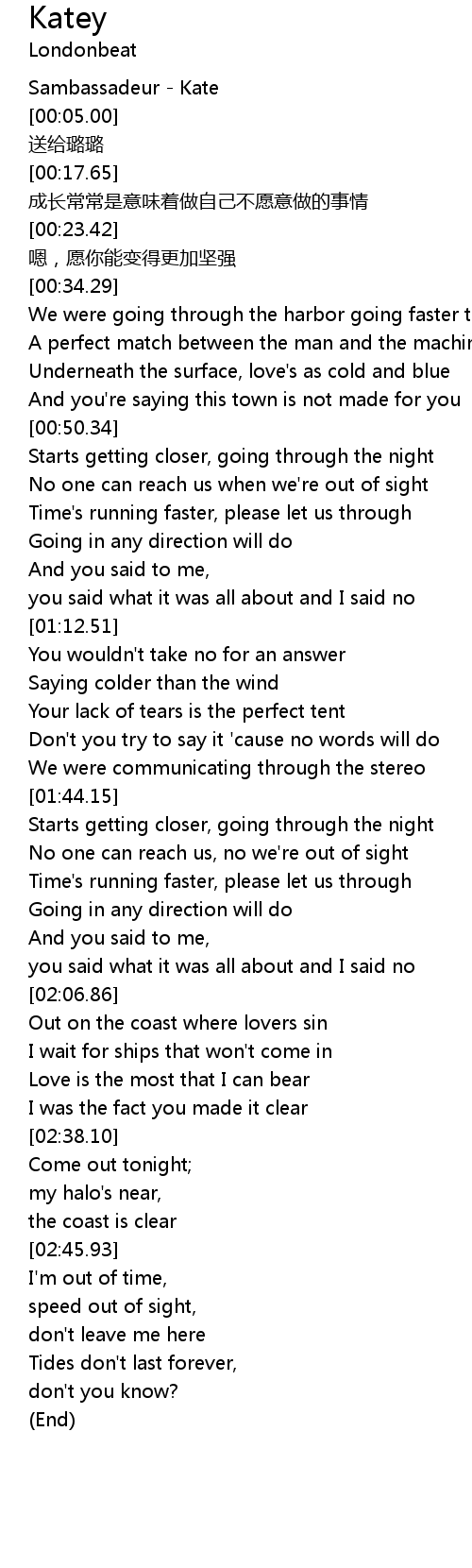 | [00:43.28] | Underneath the surface, love's as cold and blue |