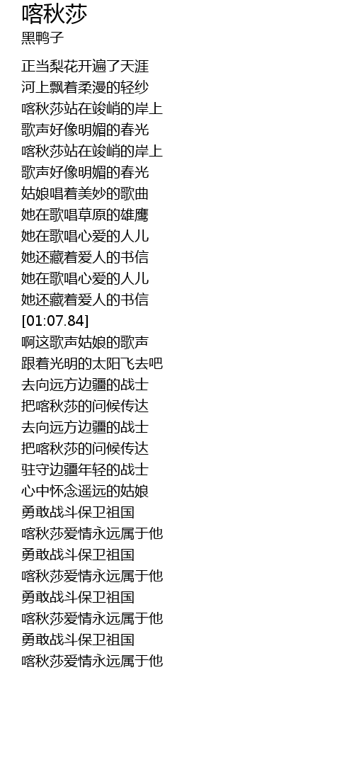 | [01:56.08] | 喀秋莎爱情永远属于他 |