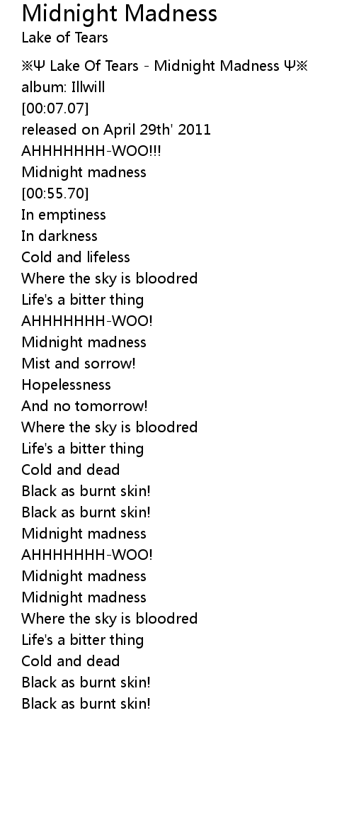 | [00:02.58] | Lake Of Tears Midnight Madness |