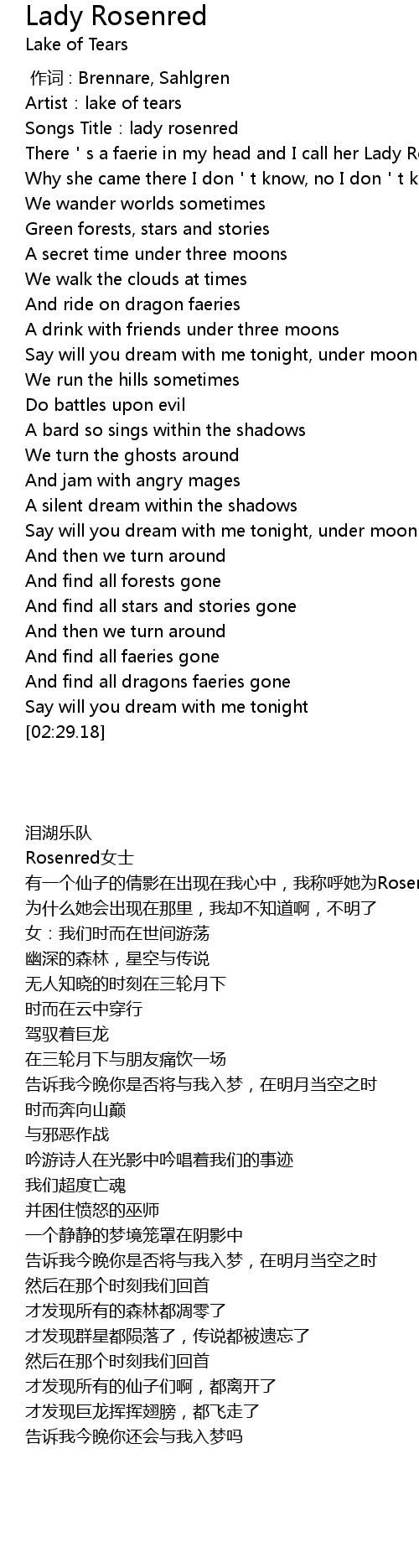| [00:01.69] | There s a faerie in my head and I call her Lady Rosenred |