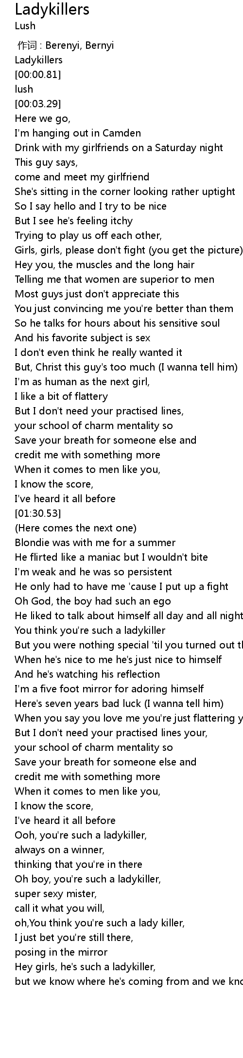 | [02:04.70] | You think you're such a ladykiller |