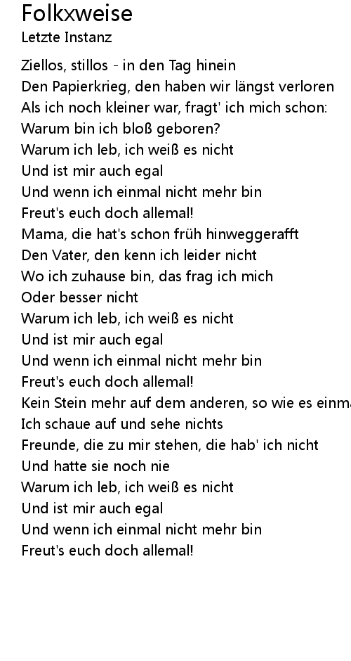 | Mama, die hat' s schon frü h hinweggerafft | |