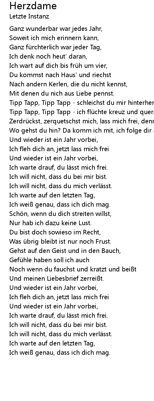 | Tipp Tapp, Tipp Tapp schleichst du mir hinterher. | |