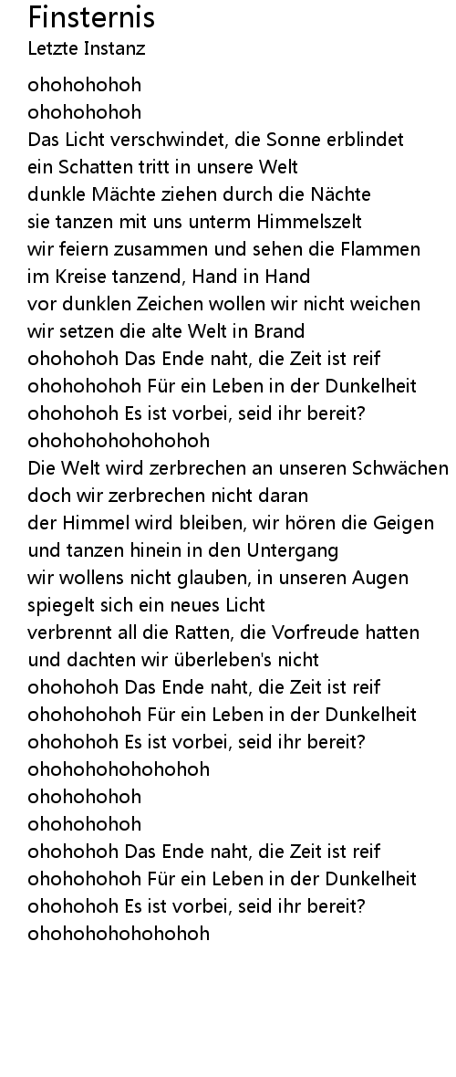 | ohohohohoh Für ein Leben in der Dunkelheit | |
