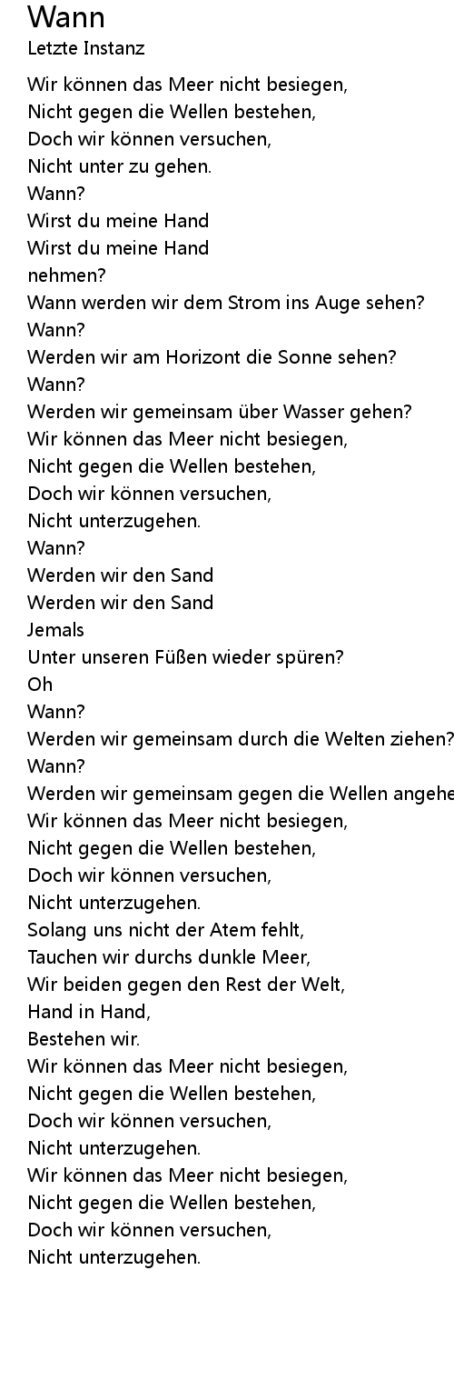 | Werden wir gemeinsam ü ber Wasser gehen? | |