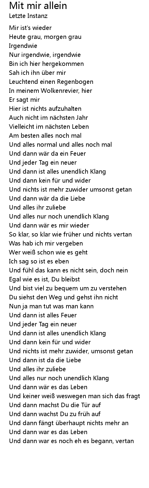 | Song | Mit mir allein |