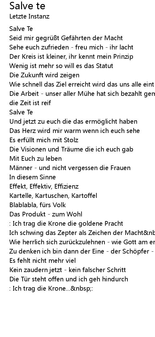 | Ich schwing das Zepter als Zeichen der Macht nbsp: | |