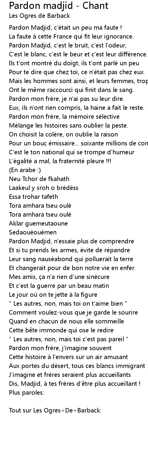 | Pardon Madjid, n' essaie plus de comprendre | |