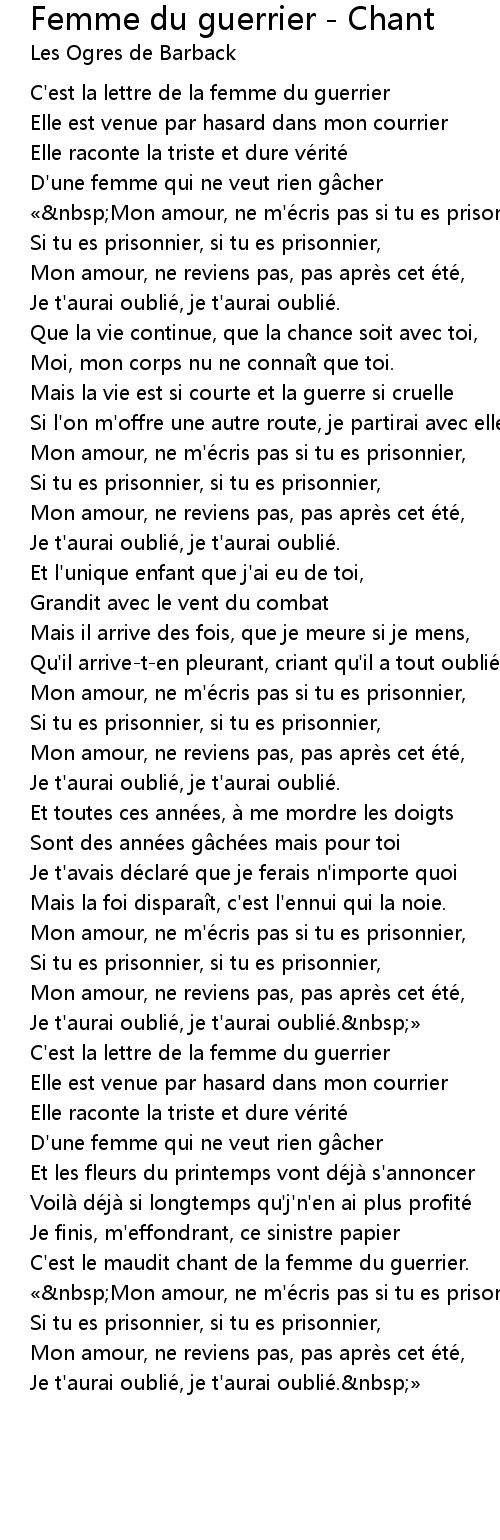 | nbsp Mon amour, ne m'e cris pas si tu es prisonnier, | |