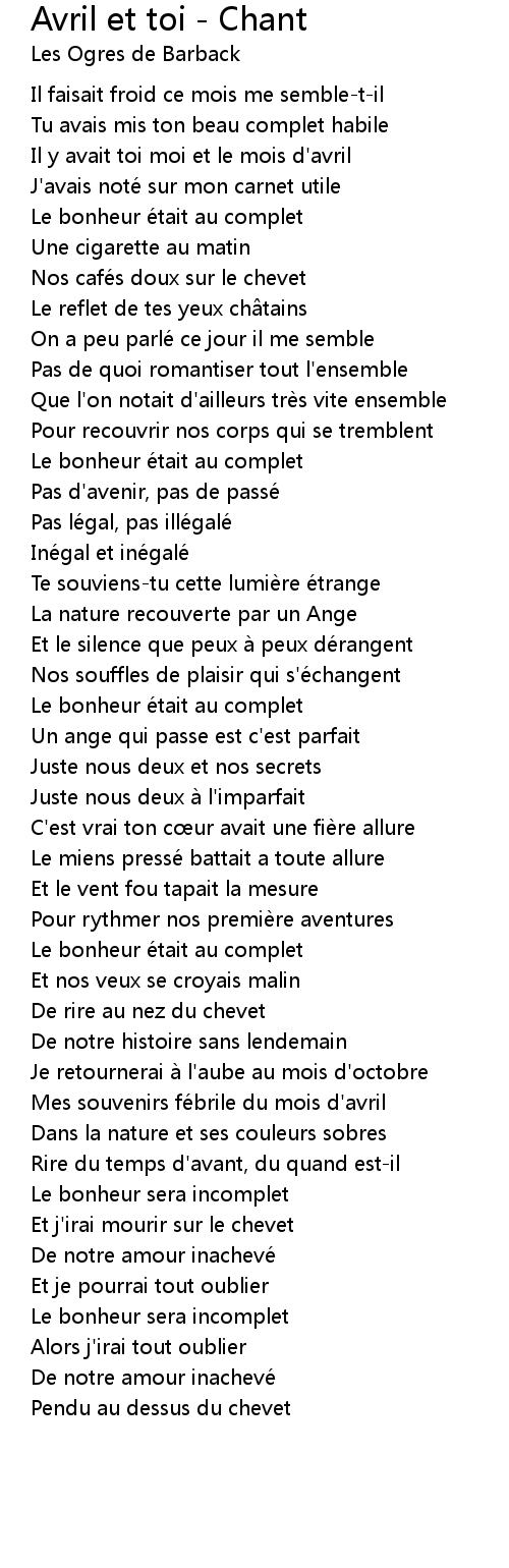 | Song | Avril et toi - Chant |
