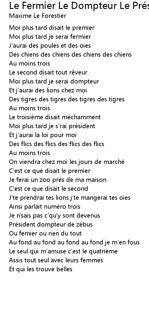 | Song | Le Fermier Le Dompteur Le Président Et L'Autre |