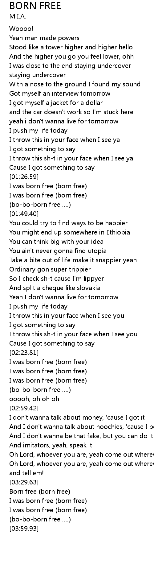 | [02:39.14] | (bo-bo-born free ….) |