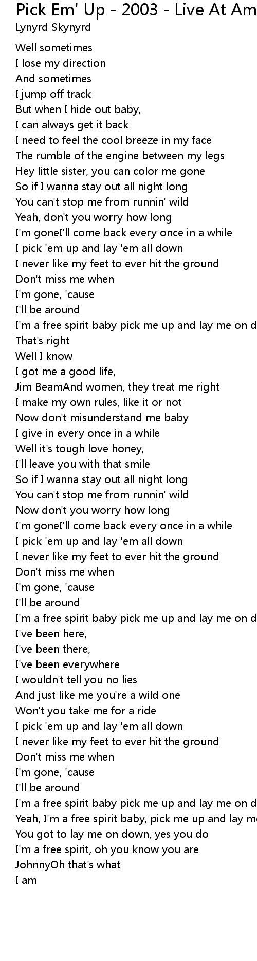 Yeah, I'm a free spirit baby, pick me up and lay me on down |