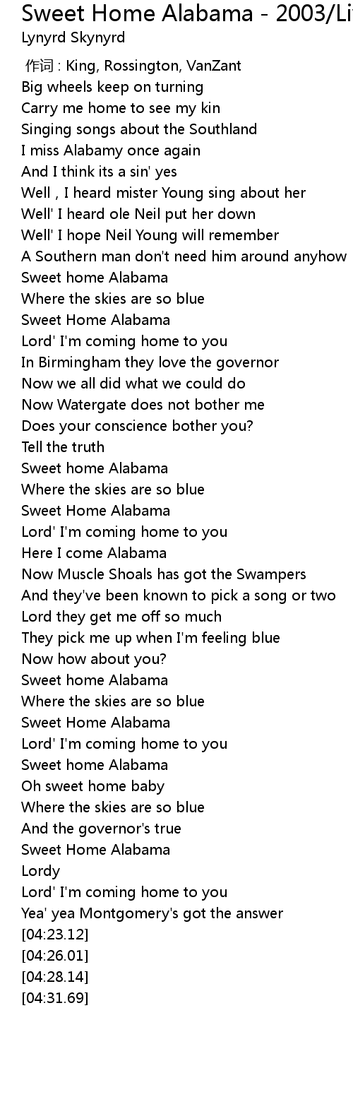 | Song | Sweet Home Alabama - 2003/Live At Amsouth Ampitheatre, TN |