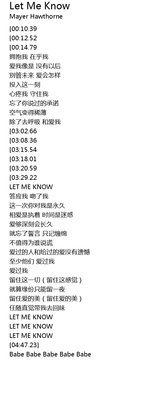 | [00:25.56][00:10.39] | LET ME KNOW |