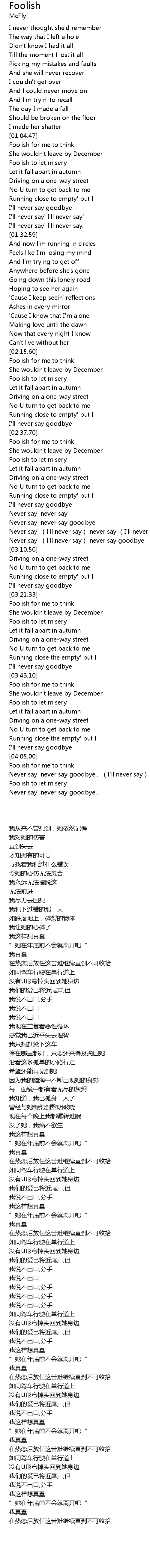 | [02:19.33] | She wouldn't leave by December |