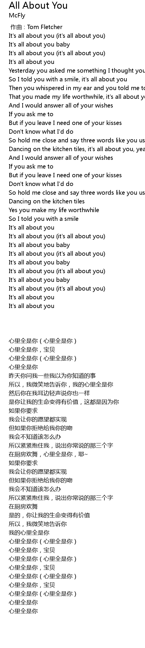 | [00:39.460] | So I told you with a smile, it' s all about you |
