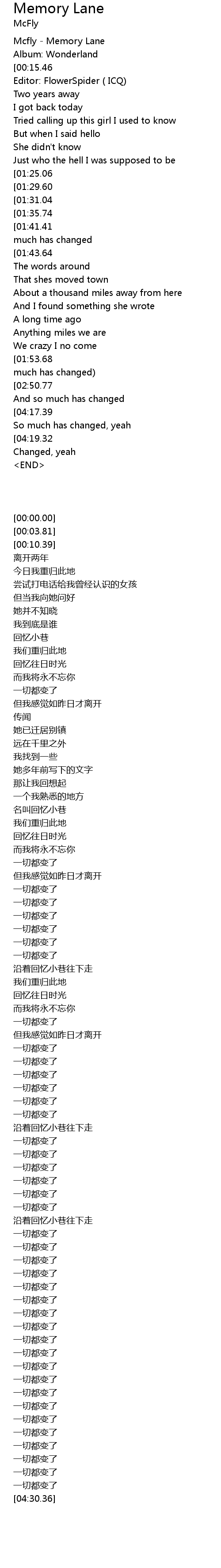 [00:00.00] Mcfly - Memory Lane