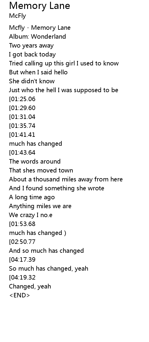 | [00:00.00] | Mcfly - Memory Lane |