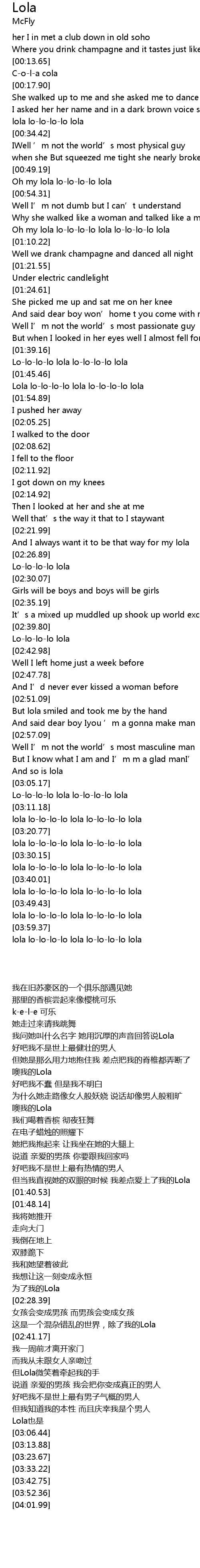 | [04:01.99] | lola lo-lo-lo-lo lola lo-lo-lo-lo lola |