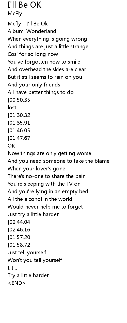 | [00:00.00] | Mcfly - I'll Be Ok |