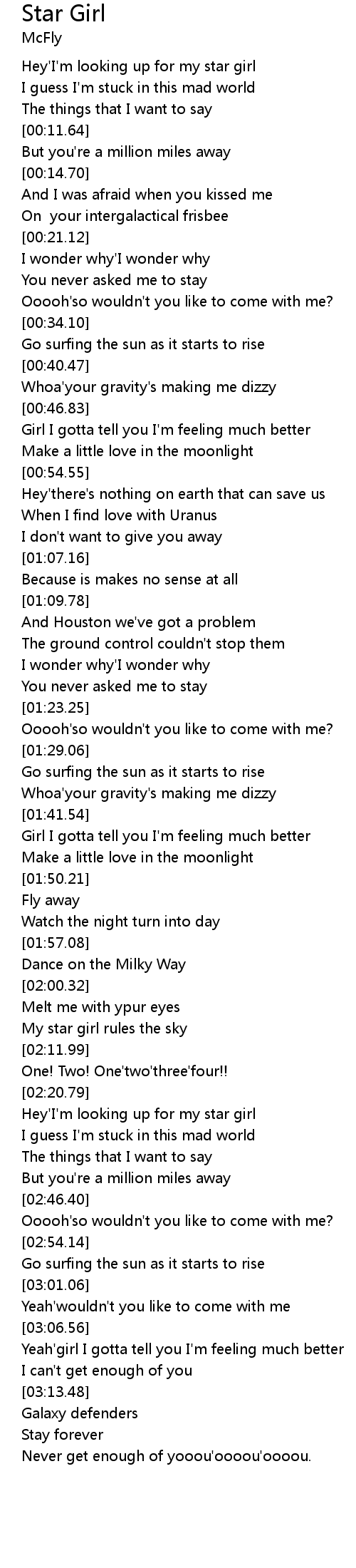 | [02:04.38] | My star girl rules the sky |