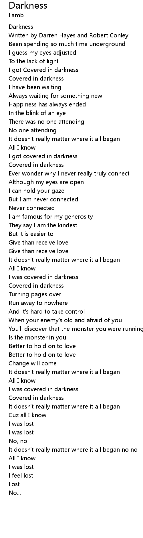 I got Covered in darkness |