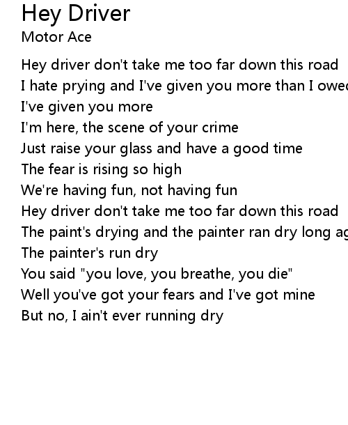 | Hey driver don't take me too far down this road | |