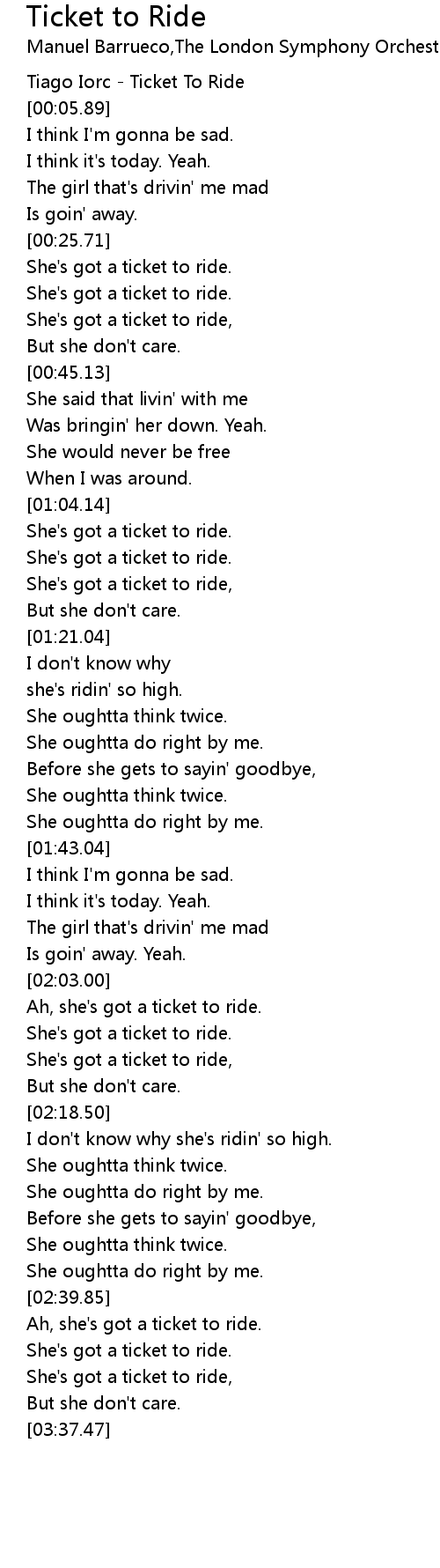 Ah, she's got a ticket to ride. |