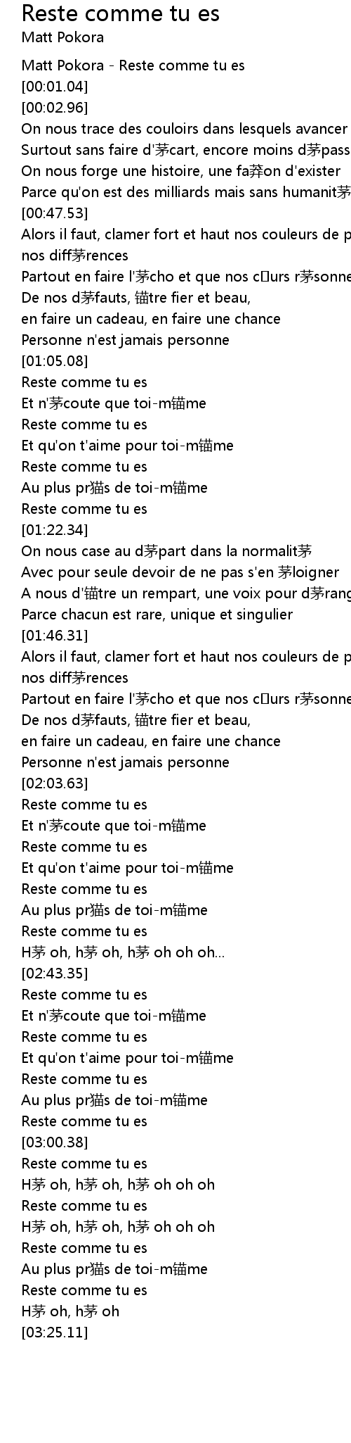 | [02:58.07] | Reste comme tu es |