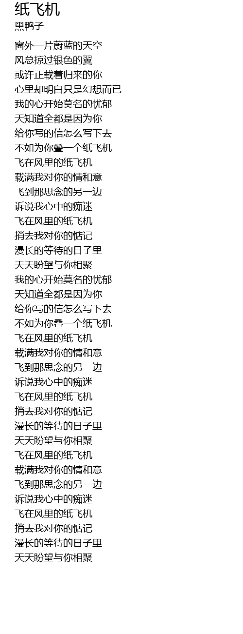 | [01:17.84] | 不如为你叠一个纸飞机 |
