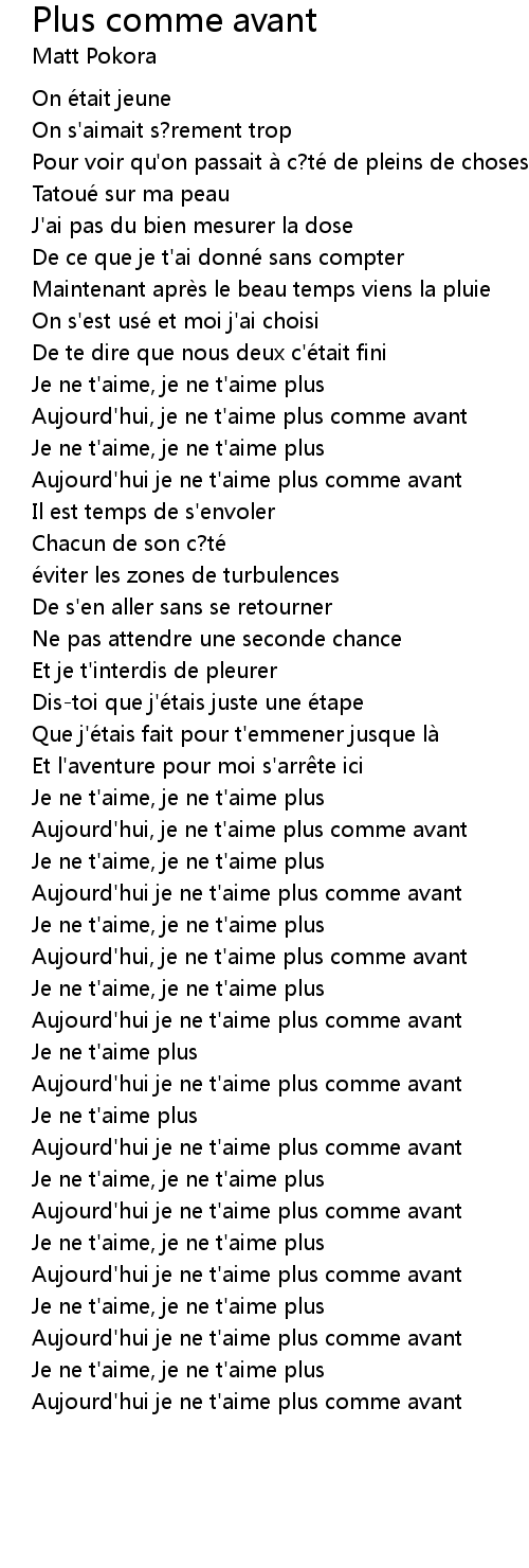 | [02:58.37] | Aujourd'hui je ne t'aime plus comme avant |