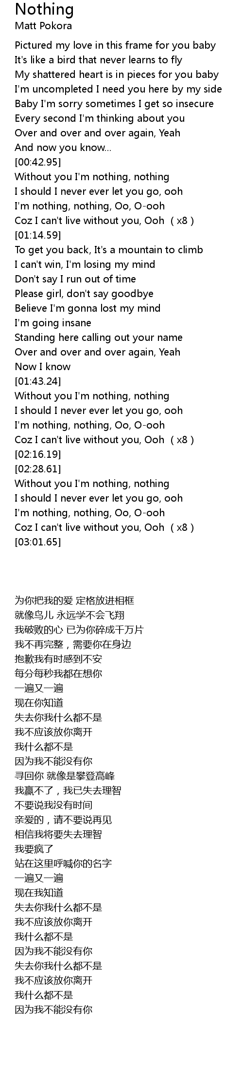 | [00:52.52] | I' m nothing, nothing, Oo, Oooh |
