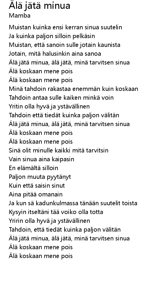 | Älä jätä minua, älä jätä, minä tarvitsen sinua | |