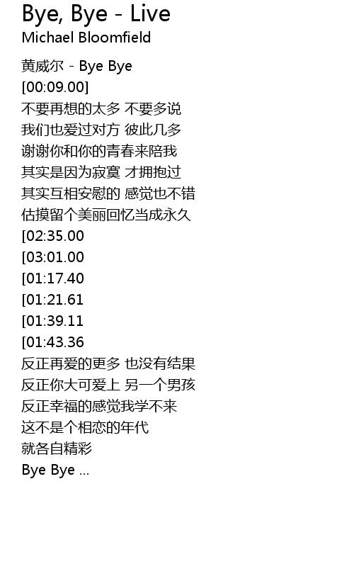 | [00:02.00] | 黄威尔 - Bye Bye |
