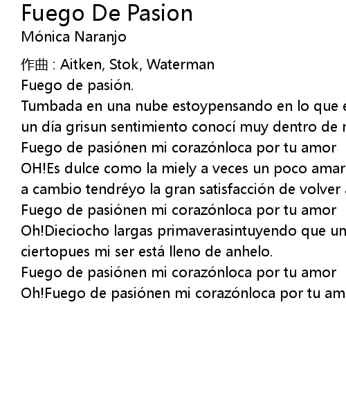 | Fuego de pasió nen mi corazó nloca por tu amor | |