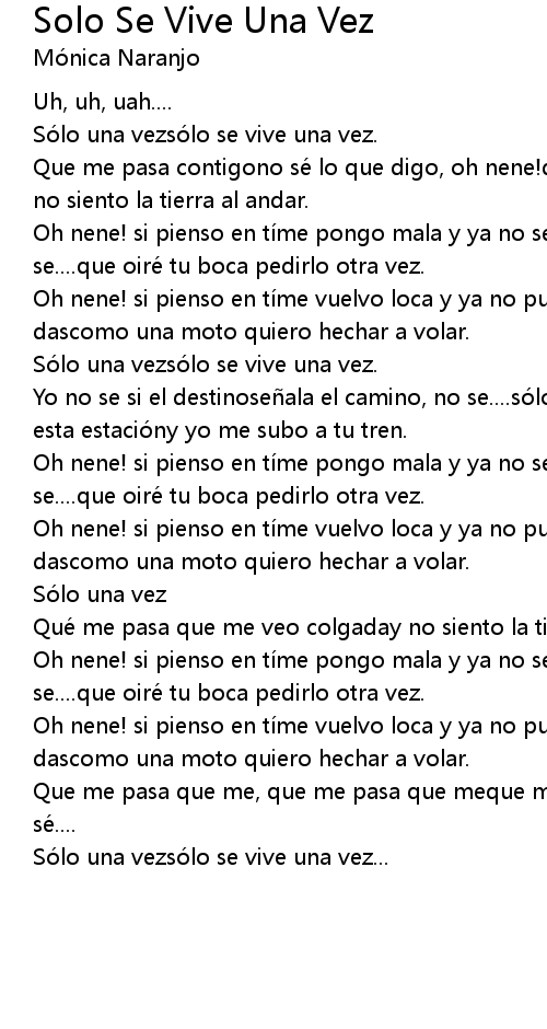 | Oh nene! si pienso en tíme vuelvo loca y ya no puedo pararquiero eso que tú me dascomo una moto quiero hechar a volar. | |