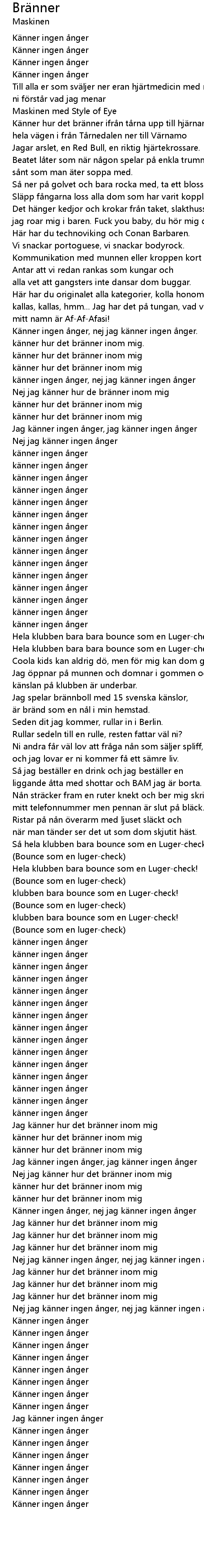 | K nner ingen nger, nej jag k nner ingen nger. | |