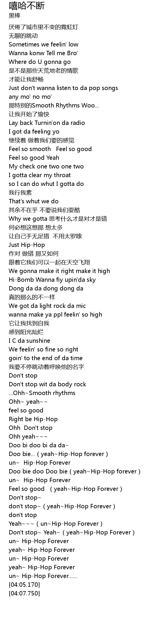 | [04:02.540] | un~ Hip-Hop Forever...... |
