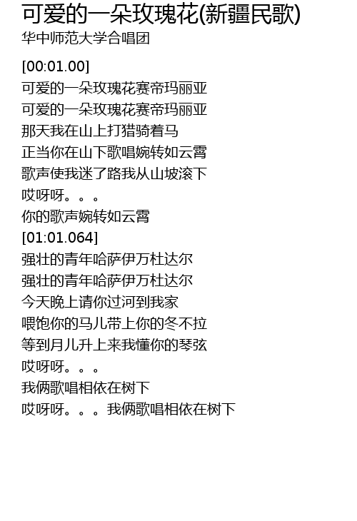 | [00:03.160] | 可爱的一朵玫瑰花赛帝玛丽亚 |